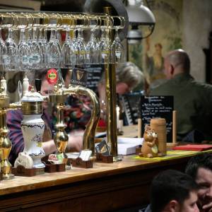 Le restaurant se situe dans une ancienne cave à vin, aux belles poutres apparentes et aux murs de pierre. Un endroit de caractère où l'on se retrouve autour d'une table, accompagné d'un verre de vin ou d'une de nos bières pression.